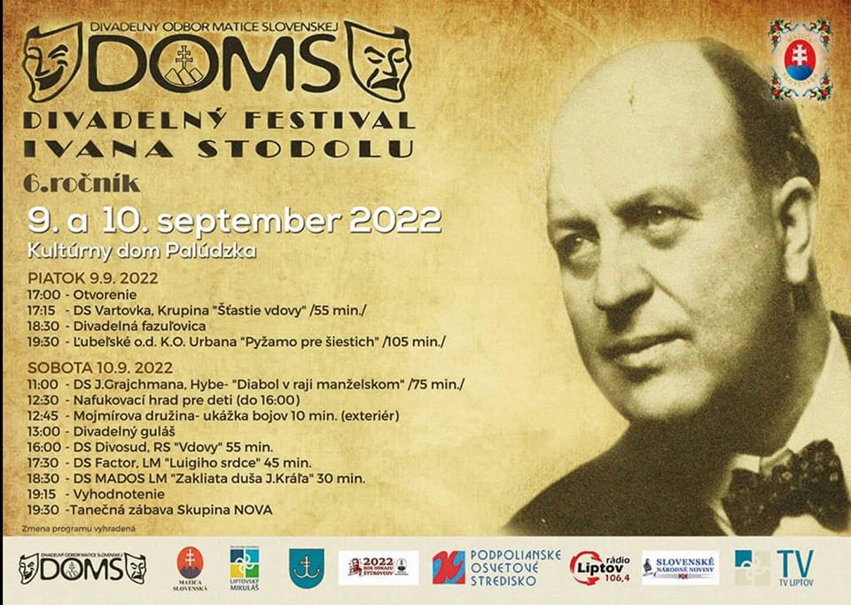 Už 6. ročník divadelného festivalu Ivana Stodolu sa konal 9. a 10. septembra 2022 v Kultúrnom dome Palúdzka. Organizátorom bol Divadelný odbor Matice slovenskej a festivalu sa zúčastnilo šesť súborov.